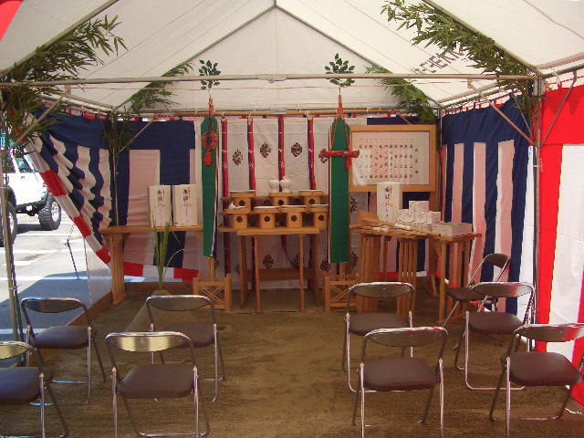 建築工事が始まる前に工事期間中の安全を祈願するために行う儀式です。